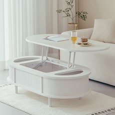 퍼리든 로브 타원형 리프트업 쇼파테이블 1200 리프트테이블, 화이트