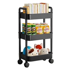 Tiger Pavilion 다기능 수납 트롤리, 블랙, 3단, 1개