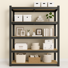 수납선반 앵글선반 선반 책장 다용도선반 무볼트 조립식 베란다, 5단, 블랙